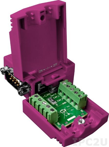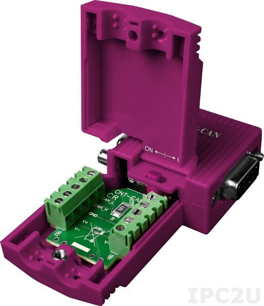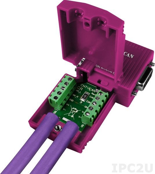 Угловой разъём CNT-CAN используется для подключения узла CAN-шины к линии CAN и оснащён технологией быстрого соединения, благодаря которой отпадает необходимость в зачистке проводников. Разъём легко и быстро устанавливается, имеет пластиковый корпус и встроенные согласующие резисторы.
