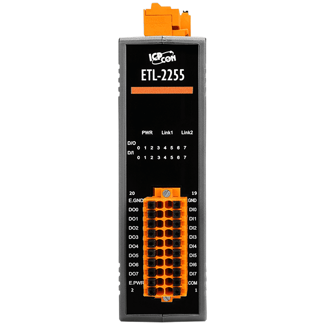 ETL-2255 - это промышленный модуль удаленного ввода-вывода, построенный на базе передовой технологии 10BASE-T1L (стандарт IEEE 802.3cg). Устройство позволяет интегрировать полевые сигналы в общую Ethernet-сеть предприятия на дистанциях до 1000 метров по одной экранированной витой паре